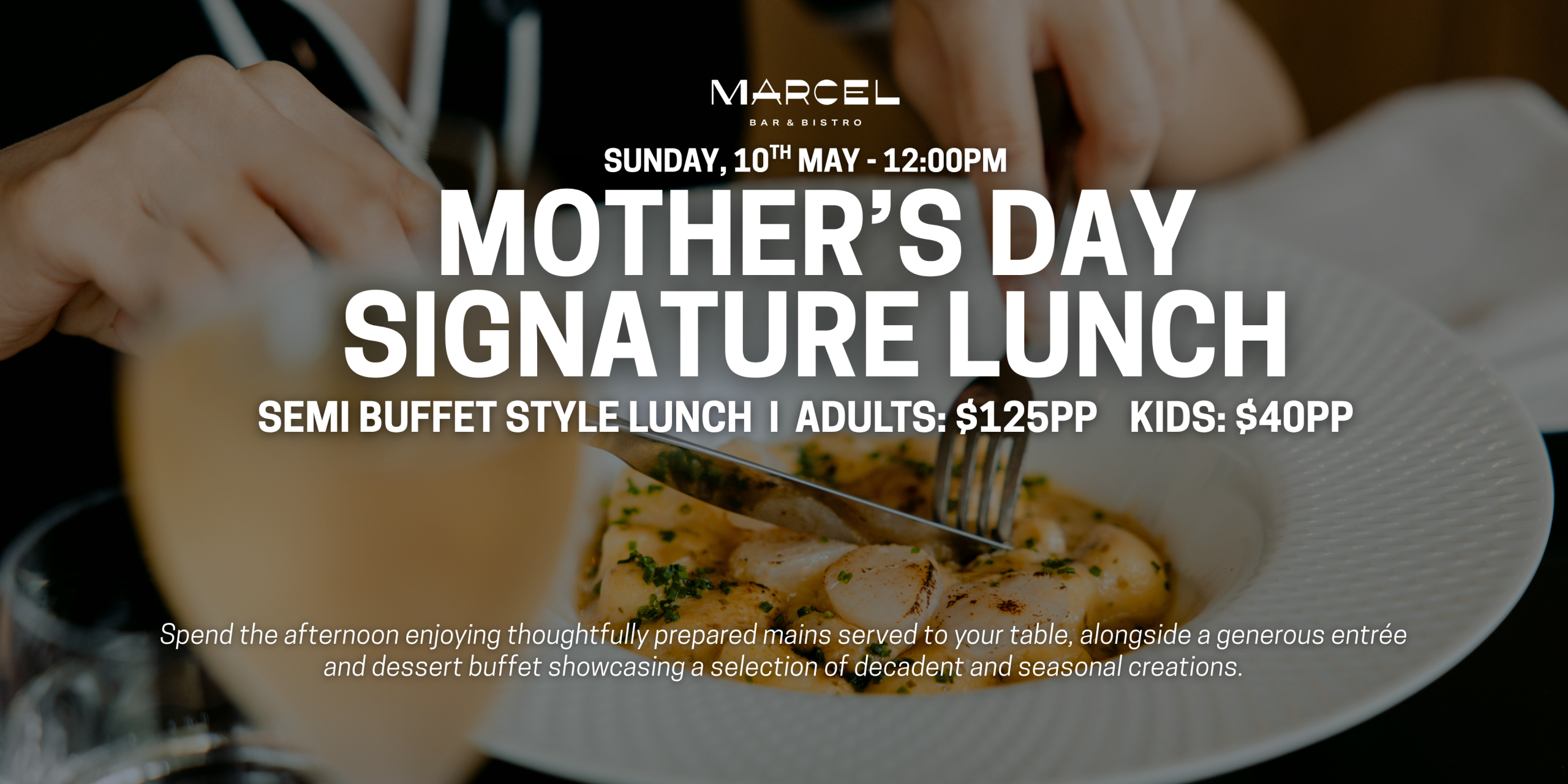 Celebrate Mother’s Day at Marcel with a relaxed, European-inspired dining experience featuring plated mains and a generous entrée and dessert buffet.